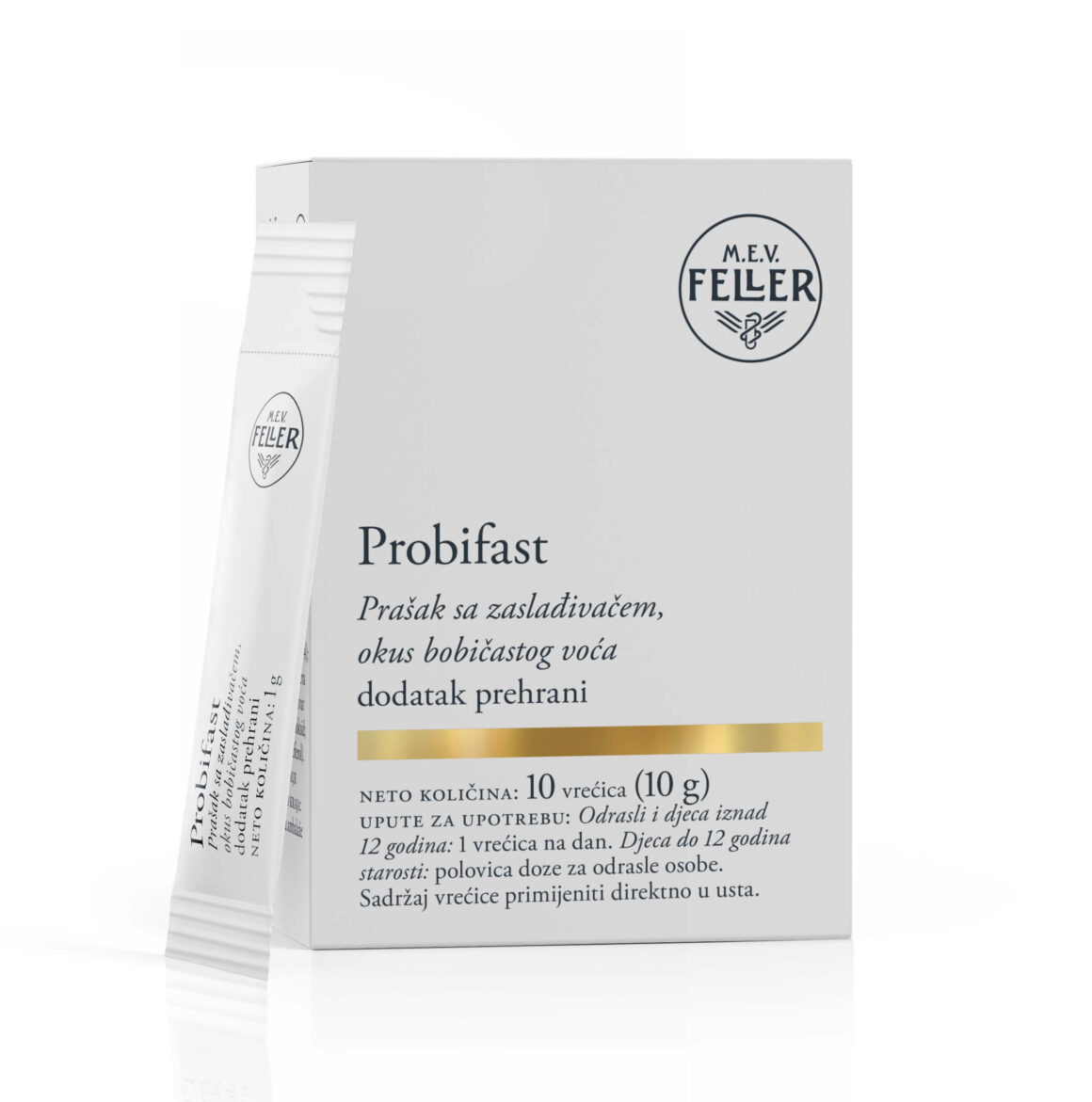 M.E.V. Feller® Probifast jedinstven je pripravak bakterijskih kultura prilagođen za djecu i odrasle. Specifičan po FAST MELT tehnologiji brzog topljenja u ustima, omogućuje jednostavnu upotrebu bez dodatnog unosa tekućine uz osvježavajući okus bobičastog voća. Pripremljen je u odgovarajućim dnevnim dozama koje sadržavaju dva soja bakterijskih kultura, Bifidobacterium lactis BL-04 i Lactobacillus rhamnosus BIFOLACTMGG.
