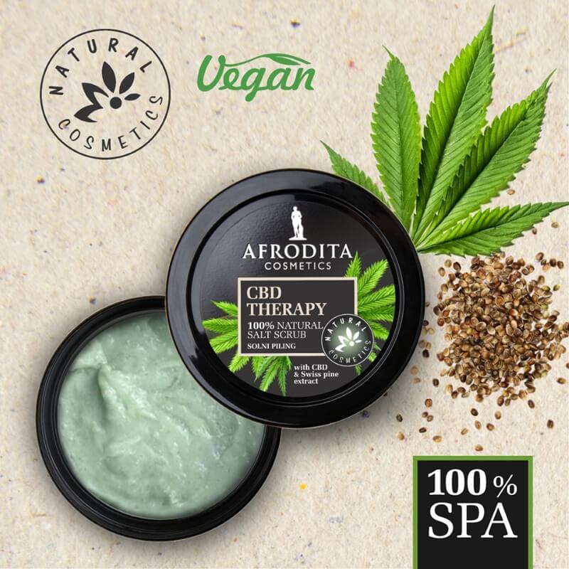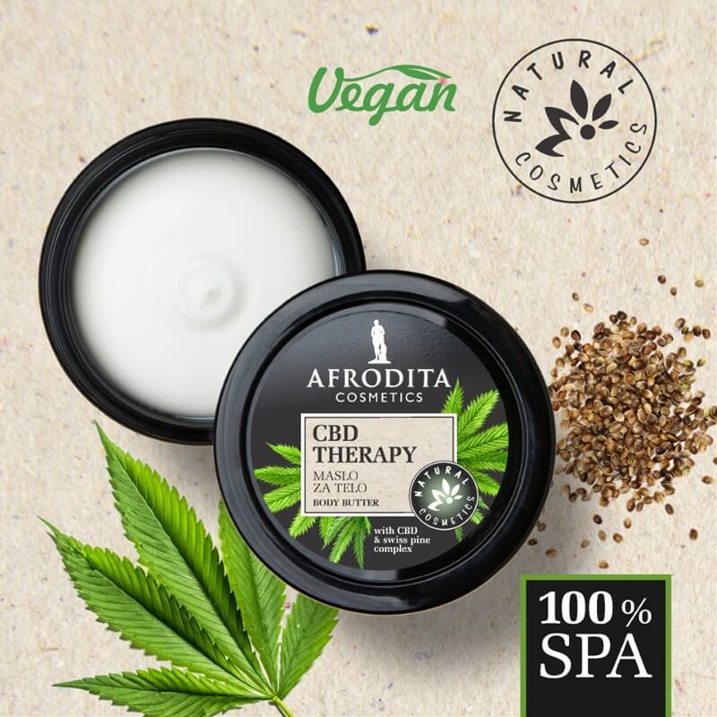 Afroditina linija 100% SPA CBD Therapy odražava ravnotežu tri sastojaka koji su u trendu: organsko konopljino ulje, enkapsulirani CBD i ekstrakt švicarskoga bora. U harmoniji zelenih sastojaka uživanje je omogućeno svim osjetilima jer će nježni mirisi prirode potaknuti ugodu, a koža će postati meka i u potpunosti smirena. Proizvodi 100% SPA CBD Therapy odlični su za sve tipove kože, pa i one najzahtjevnije i najosjetljivije. Sva tri proizvoda u sebi skrivaju note bezbrižnosti i pozitivnih vibracija.