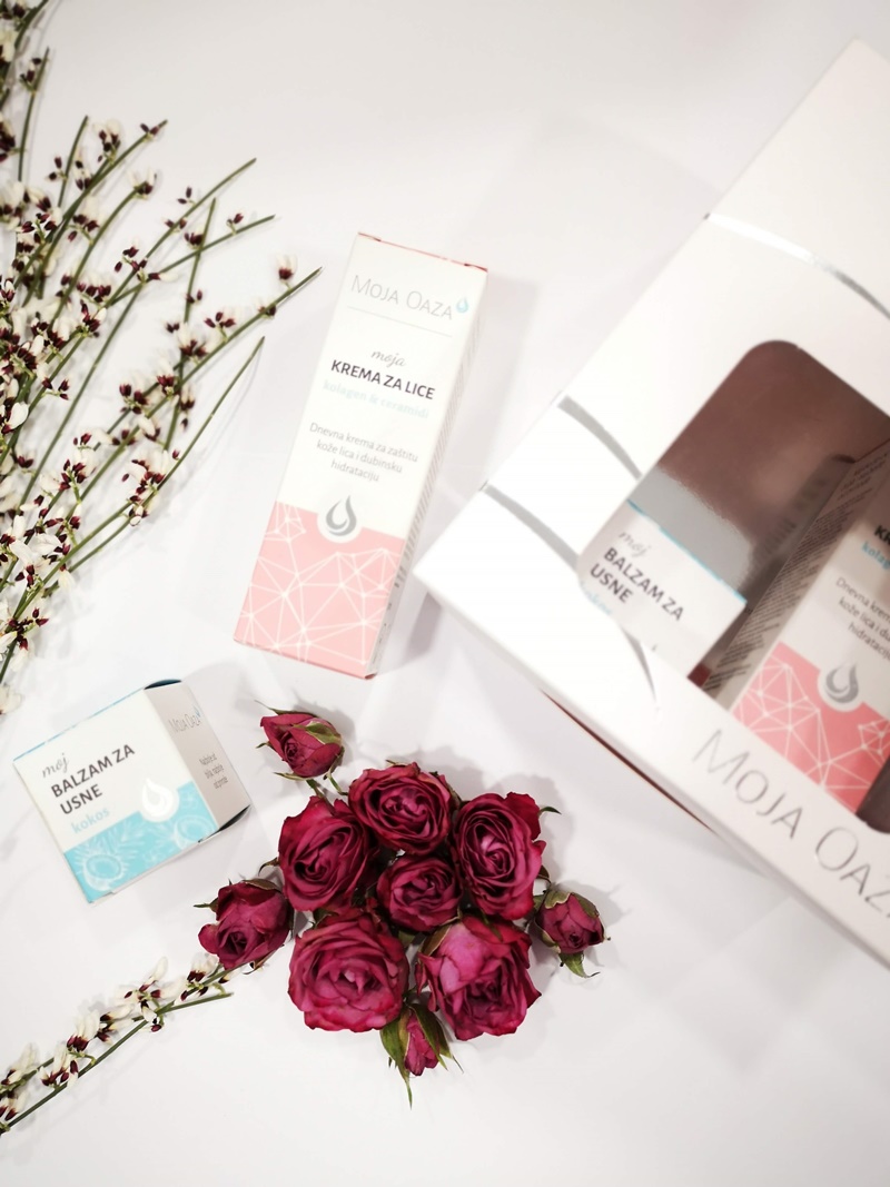 Moja Oaza poklon paket idealan je poklon za rođendan, Božić ili Valentinovo. Sastoji se od nagrađivane kreme od strane dermatologa, Kreme za lice Kolagen&Ceramidi koja koži pruža zaštitu tijekom čitavog dana, dubinski ju hrani i hidratizira te njegujućeg Balzama za usne Kokos. Sada je sa 130 kn snižen na 99 kuna.