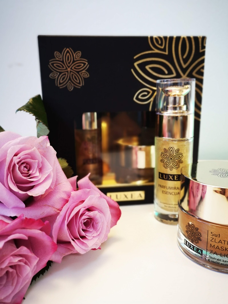 Luxea poklon paket idealan je izbor ako tražite savršen poklon za dragu osobu bez obzira na prigodu. Paket je već prigodno zapakiran i uvijek je dobra ideja za blistavu ljepotu i dašak glamura. Sadrži Luxea parfumiranu esenciju i Luxea ultimativnu luksuznu 5 u 1 zlatnu masku za lice. Trenutno je sa 275,00 kn snižen na 199,00 kn.