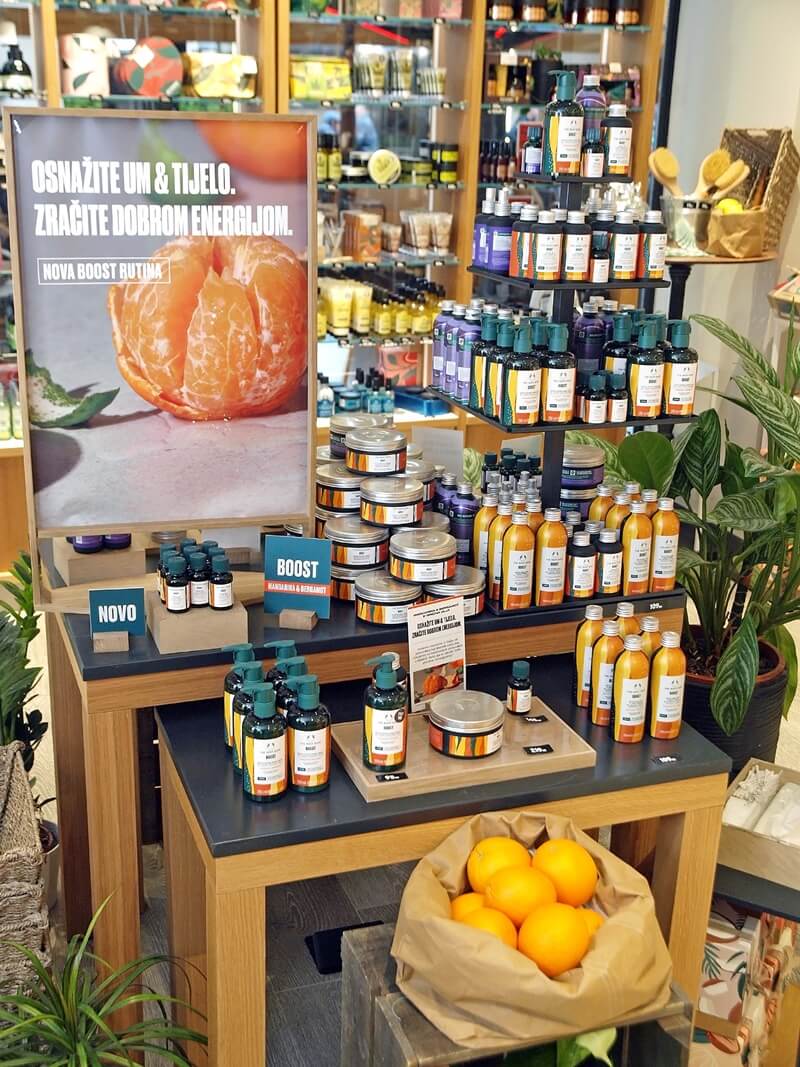 U mirisnoj oazi, The Body Shop trgovini u strogom centru Zagreba (Bogovićeva 5) brojnim novinarima i ljubiteljicama ovog beauty proizvoda predstavljene su sve tri beauty linije kroz interaktivno uživanje u balzamima, uljima, maslacima, maglici za tijelo. Bilo je nevjerojatno, kako su komentirali svi okupljeni, osjetiti moć opuštanja nakon napornog radnog dana.