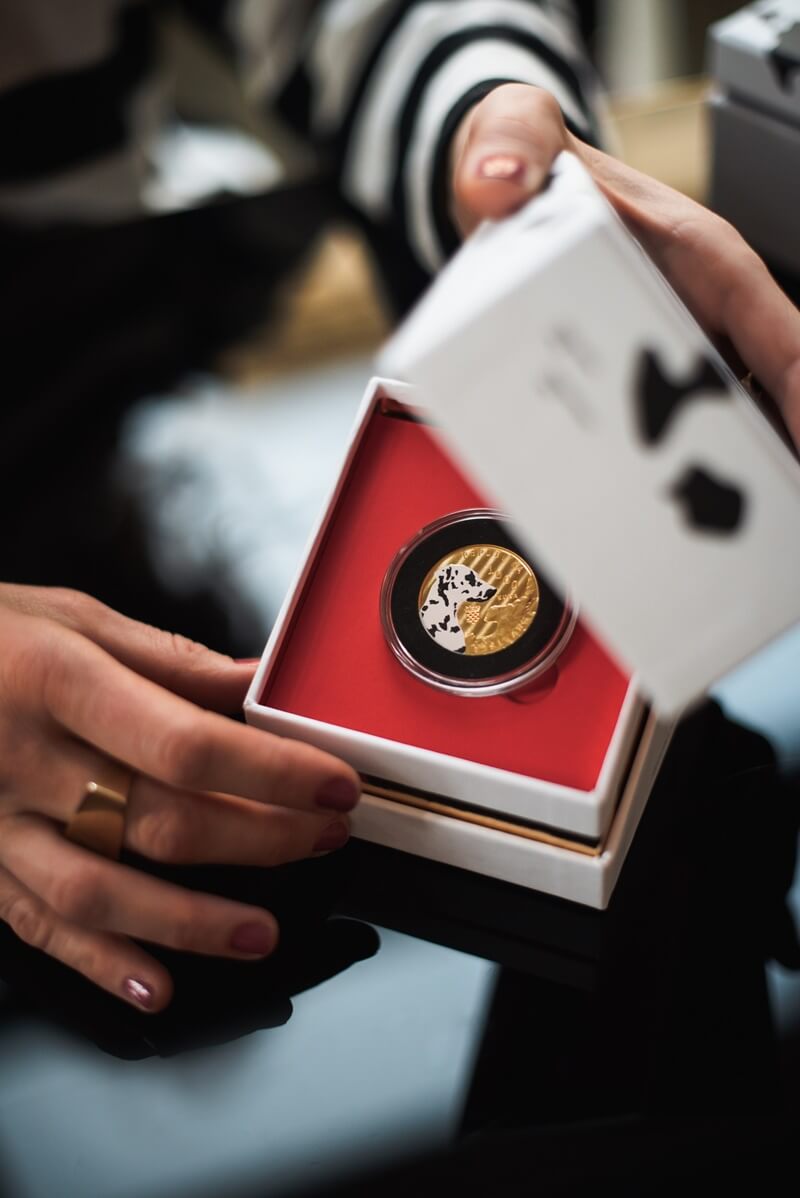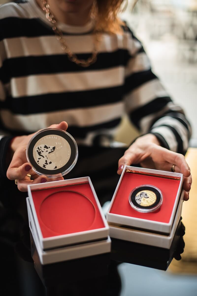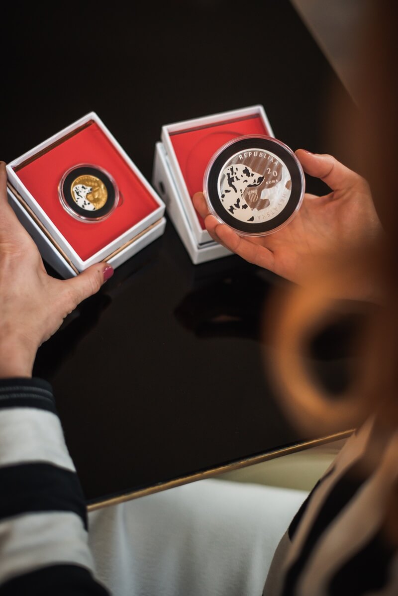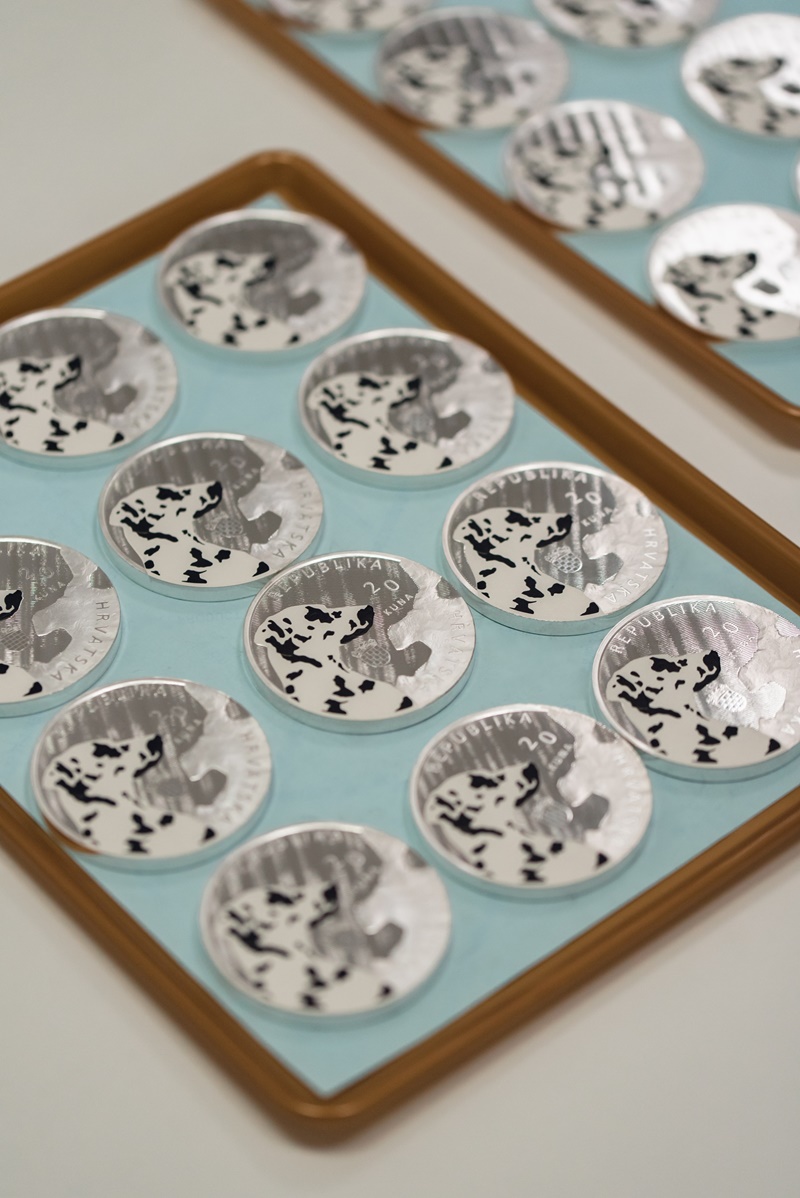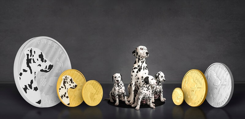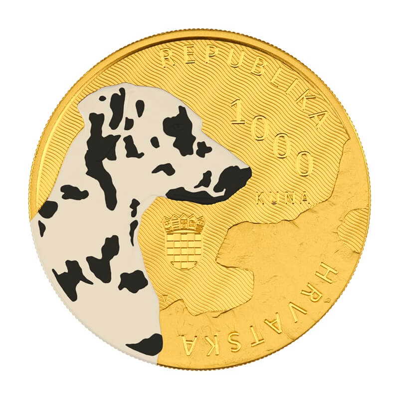 Hrvatska kovnica novca prvi puta u povijesti otkovala je kovanice u boji: zlatnik od jedne unce zlata i srebrnjak od pet unci srebra. Serija je zaokružena zlatnikom od jedne četvrtine unce zlata te tako kompletnu seriju „Dalmatinski pas“ čine ukupno četiri zlatnika i dva srebrnjaka.