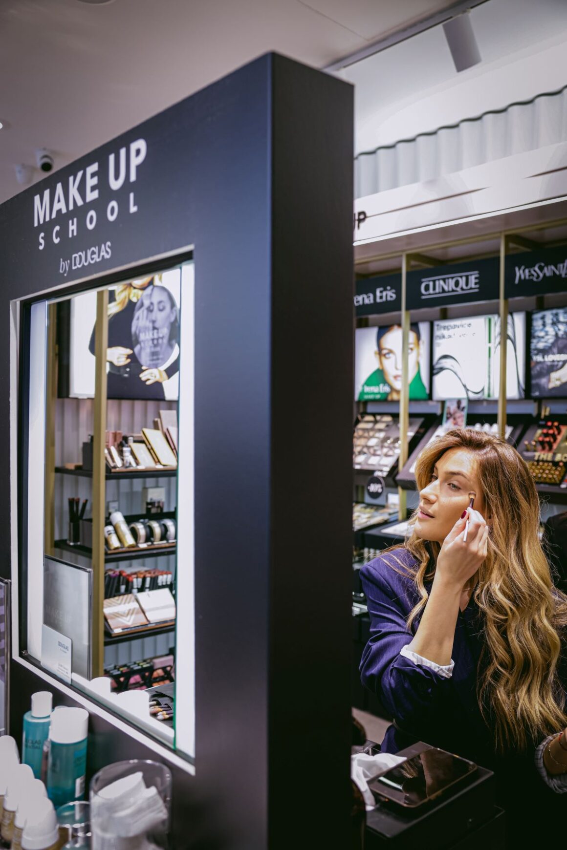 Usluga Make Up School by Douglas uključuje cjelokupni proces njege lica i nanošenja šminke, počevši od skidanja postojeće šminke, nanošenja skincare proizvoda koji služe kao baza za make up, te kreiranja zamišljenog make up looka.