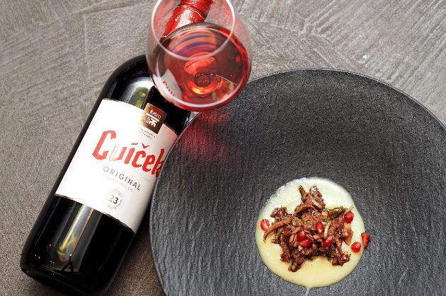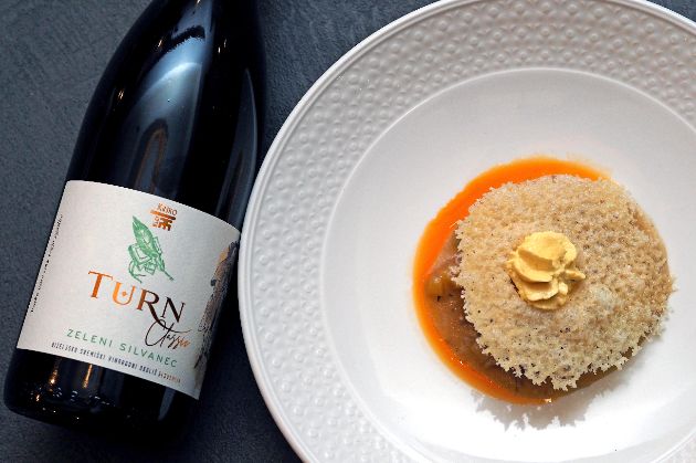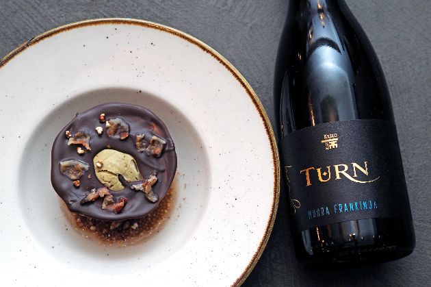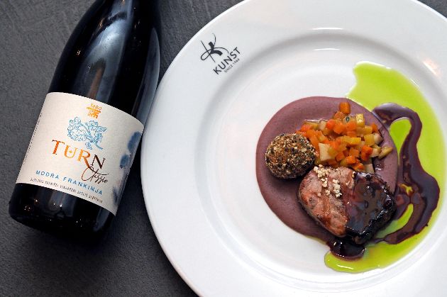 Modra frankinja bila je i u čašama, u svojoj najoptimalnijoj varijanti za ovo jelo – Classic 2020 Mini gourmet – također iz linije Turn (nazvane po lokalnom dvorcu), pokrenute iste godine. Vino je to profinjenoga i osebujnog karaktera, na nepcu voćno i sočno, mineralnog okusa s baršunastim taninima uz ugodan after taste.