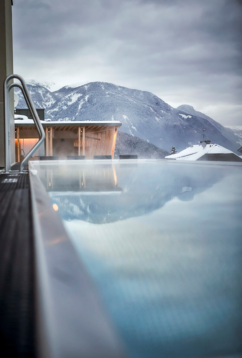 Zajednička nit cjelogodišnjeg odmora ogleda se i u ponudi Acquapura Mountain SPA. Ovdje se snaga četiri planinska elementa Dolomita – stijena, izvorske vode, planinskog sunca i planinskog zraka – koristi za punjenje baterija kroz individualno prilagođene spa tretmane. Iz toplog rooftop bazena možete uživati u bajkovitom pogledu na Kronplatz, a u finskoj sauni na otvorenom okruženi ste moćnim južnotirolskim planinama.