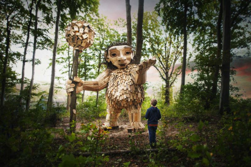 Divovski trolovi, nazvani Little Lui, Vivi Cirklestone, Seba i Santi Ikto, napravljeni su od recikliranog drva, baš kao i deseci drugih divova koje je Dambo izgradio u šumama diljem svijeta.