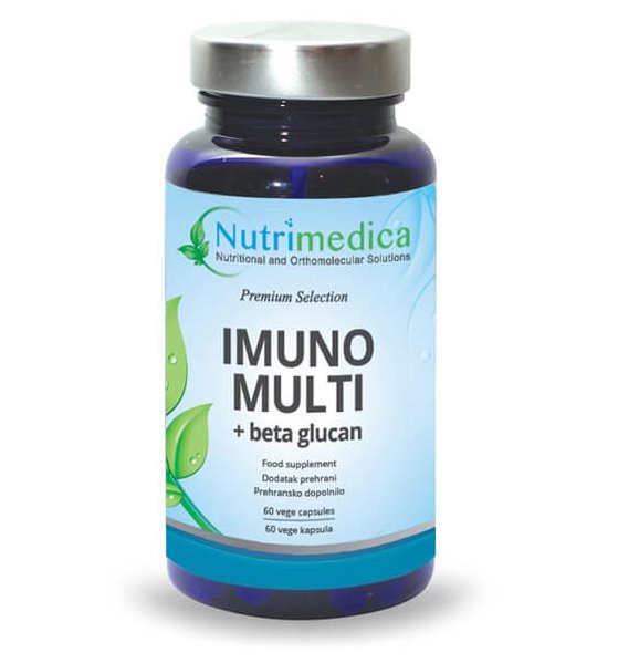 Imuno Multi + Beta Glukan dodatak prehrani sadrži: Vitamin C, bakar, cink, vitamine B6, B12 i D, selen koji pridonose normalnoj funkciji imunološkog sustava.