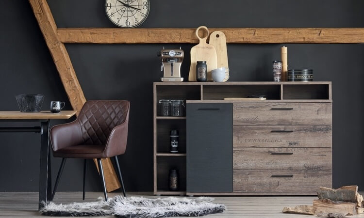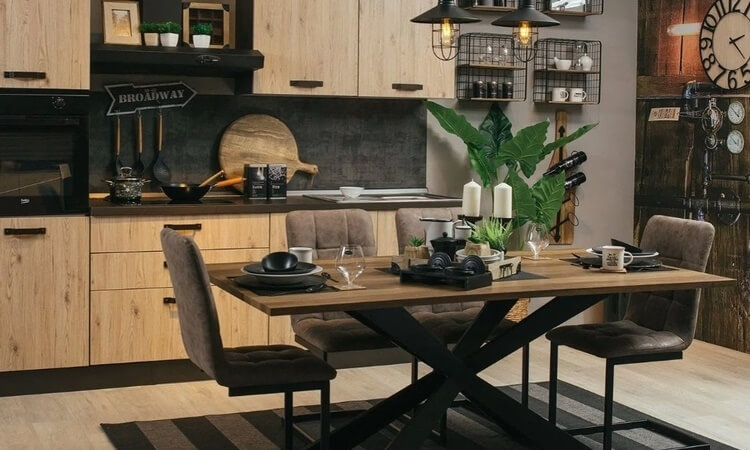 Tamno drvo može izgledati prenapadno, ali ako tek planirate opremiti svoj dom u industrijskom stilu, tada vam savjetujemo da kombinirate svjetlije nijanse drveta s crnim metalom. Primjerice: otvoreni regali čistih linija koje ne zagušuju prostor, crni metalni stolići s pločom od svijetlog drveta ili pak zidne police koje imitiraju komad drveta.