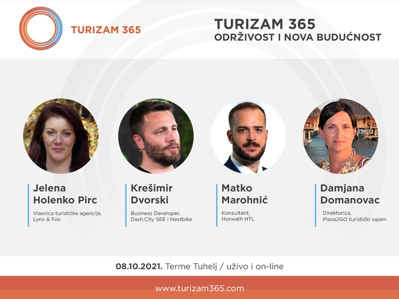 U petak, 8. listopada 2021., od 10.00 do 16.00 sati u Termama Tuhelj, po peti će se put održati međunarodna konferencija o cjelogodišnjem turizmu Turizam 365. Ove godine tema je Održivost i nova budućnost, a konferencija sadrži tri dijela koja povezuju turizam i politiku, turizam i business te život s turizmom na terenu.Konferencija će se održati paralelno uživo i online te će donijeti aktualne analize, rasprave, inicijative i planove za post Covid turizam, smart i održivo poslovanje te nove tehnologije i novu budućnost turizma.
