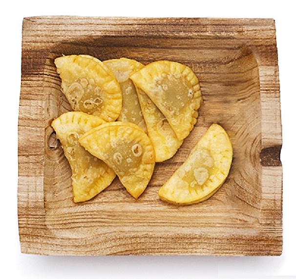 Izmiješati sve sastojke u kašasti, ali kompaktni nadjev. Tijesto izvaljati i razvući što tanje i “ištehati” u krugove. Na sredinu kruga staviti nadjev, zatvoriti krug u polumjesec i rubove spojiti vilicom. Pržiti u vrelom ulju dok se tijesto ne napuše, izađe na površinu i dobije svijetlo žutu boju. Odmah nakon prženja uvaljati u kristal šećer.