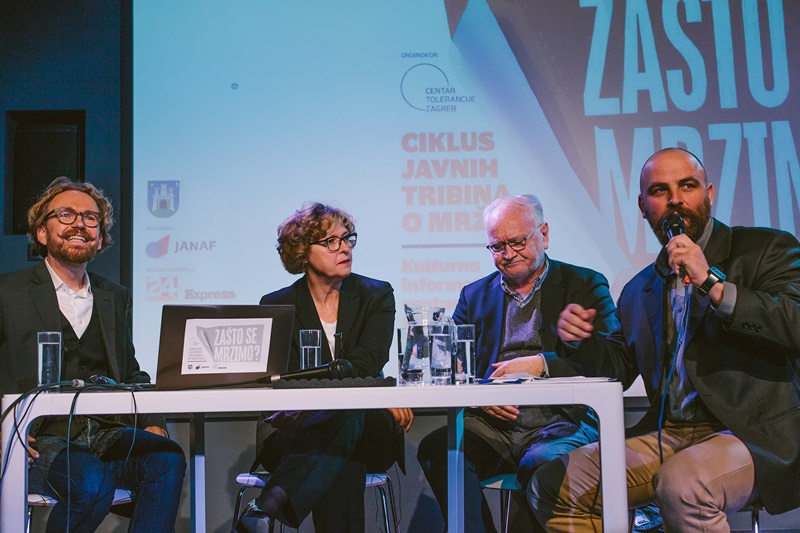 Četvrta tribina O individualnoj i grupnoj mržnji, iskustva rata i mira u organizaciji Centra za promicanje tolerancije i očuvanje sjećanja na holokaust, održana sinoć u zagrebačkom Kulturno informativnom centru, otvorila je dinamičnu raspravu o empirijskim istraživanjima i dokazima postojanja individualne i kolektivne mržnje. Mržnju su ovaj put secirali prof. dr. Dinka Čorkalo Biruški, psihologinja, profesorica Filozofskog fakulteta u Zagrebu; prof. dr. Žarko Korać, psiholog, profesor u mirovini iz Beograda i prof. dr. Aleš Črnič, sociolog, profesor Fakulteta za društvene vede iz Ljubljane. Moderator je bio pater Tvrtko Barun, voditelj Isusovačke službe za izbjeglice u jugoistočnoj Europi.