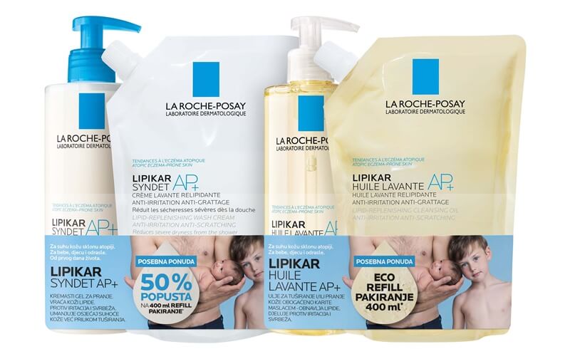 - U ljekarnama se može pronaći posebna promocija do isteka zaliha – uz kupnju Lipikar Syndet AP+ u standardnom pakiranju od 400ml, ostvaruje se popust od 50 posto na Lipikar Syndet AP+ u refill pakiranju.