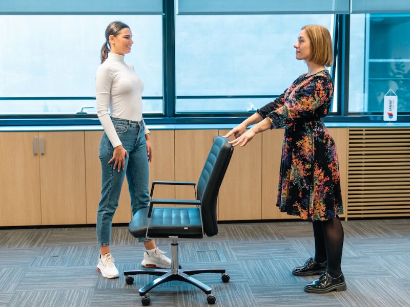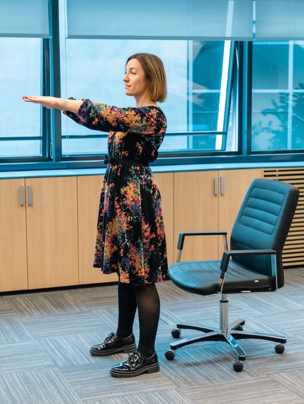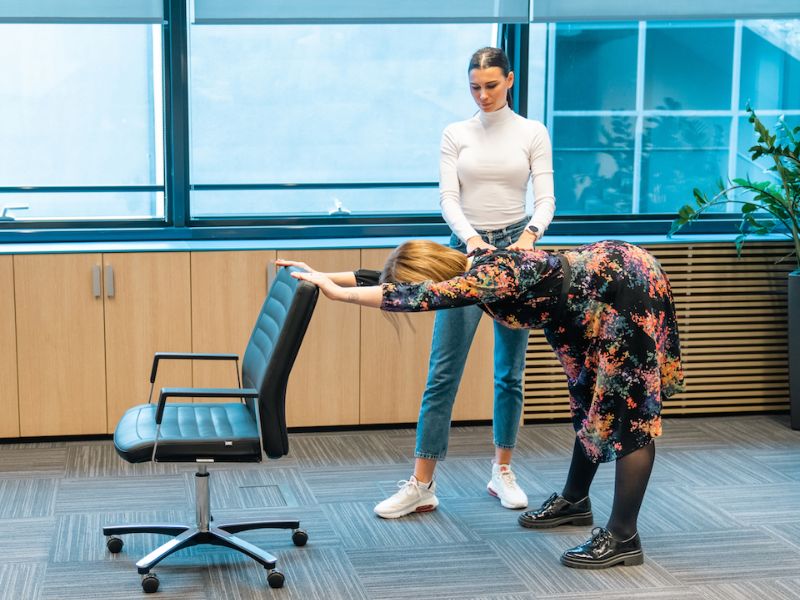 Vježbanje se provodi iz više razloga. Vježbanje utječe na jakost, snagu, izdržljivost, utječe na zdravlje srčano-žilnog sustava itd. Kineziologija rada govori o tome da je naše svakodnevno držanje tijela i način obavljanja svakodnevnih radnih zadataka prioritet za očuvanje zdravlja naše kralježnice i drugih zglobova. Odvojite nekoliko minuta u radnom danu ili čak po nekoliko puta kako bi se razgibali. Kineziologinja Lukrecija Dragić zajedno s Helenom Šintić, zaposlenicom JANAF-a, u uredu predstavlja sljedeće vježbe: