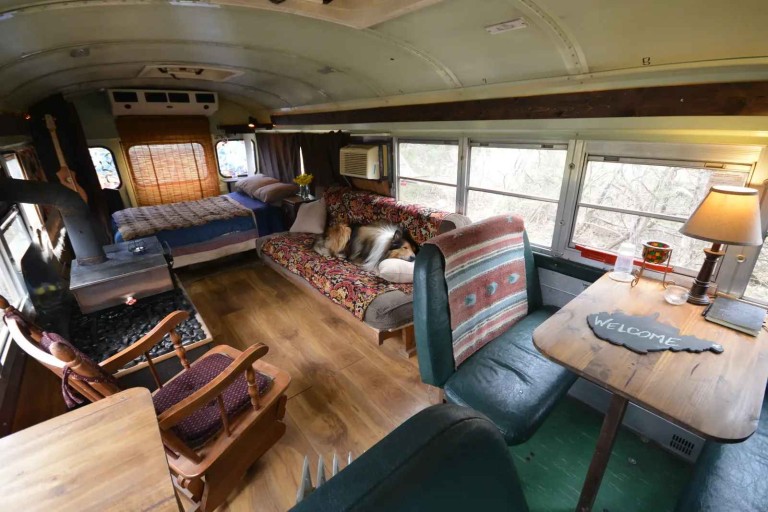Sutherland je prije kućice preuredio i školski autobus u atrakciju za iznajmljivanje i sada od ovih dvaju objekata zarađuje oko 50.000 dolara godišnje.