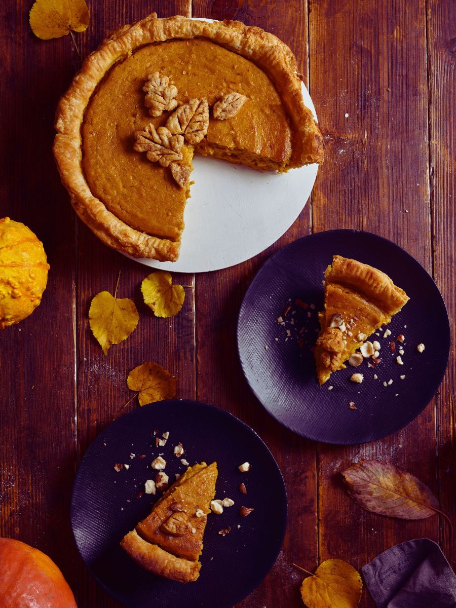 Zagrijte pećnicu na 220 Celzijevih stupnjeva. U velikoj zdjeli istucite jaja, dodajte smeđi i bijeli šećer, sol i začine (cimet, đumbir, muškatni oraščić, klinčić, kardamom i limunovu koricu). Dodajte pire od bundeve i slatko vrhnje. Miješajte sve dok se sastojci ne povežu i dok ne postignete ujednačenu teksturu. Ulijte punjenje u koru za pite od prhkog tijesta. Kora za pite treba biti smrznuta ili ne ispečena, odnosno sirova – ona će se zajedno s punjenjem ispeći u pećnici.