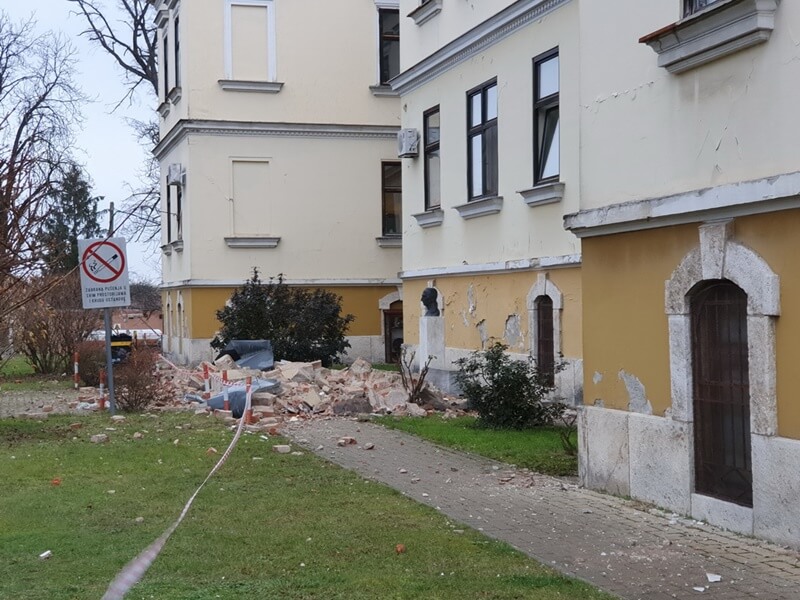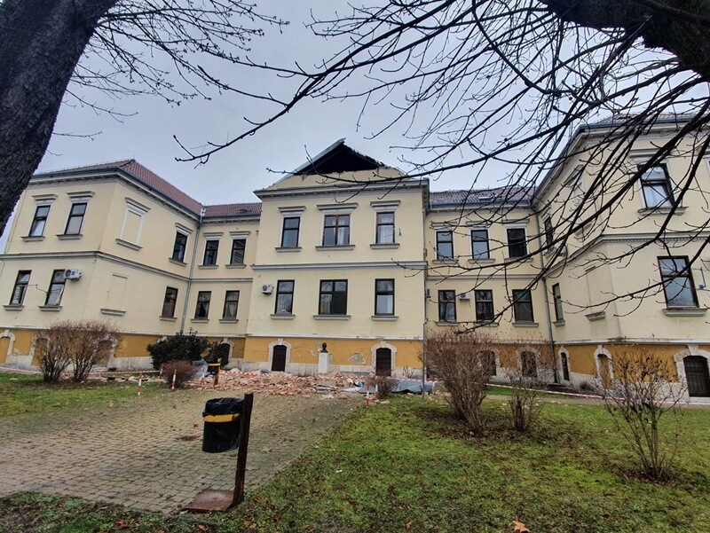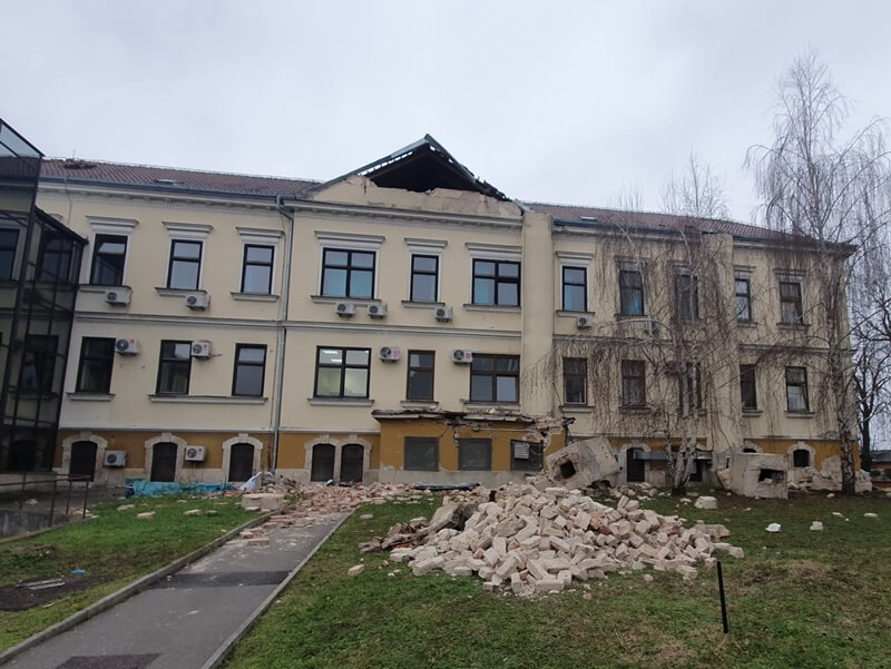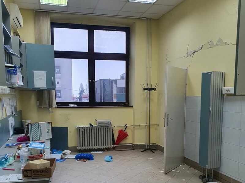 Trenutačno se u bolnici mogu koristiti samo tri zgrade – ginekologije, kirurgije i hemodijalize. Središnji je paviljon u izgradnji i još nema uporabnu dozvolu, a pet se zgrada urušilo. U bolnici su, uz građevine, stradali namještaj te medicinska, telekomunikacijska i informatička oprema.