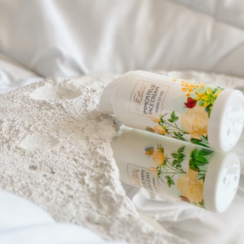 Kako bi maksimizirali prednosti seruma, potrebno ga je ‘zaključati’ hidratantnom kremom za lice. Bez obzira na to imate li suhu, masnu ili mješovitu kožu, hidratantna krema je izvrstan proizvod koji pomaže koži ostati nahranjenom, svježom i blistavom. Immortelle krema za lice s eteričnim uljem smilja je idealna za zrelu, suhu i dehidriranu kožu lica. Intenzivno regenerira kožu lica, dubinski je hrani, štiti i hidratizira.