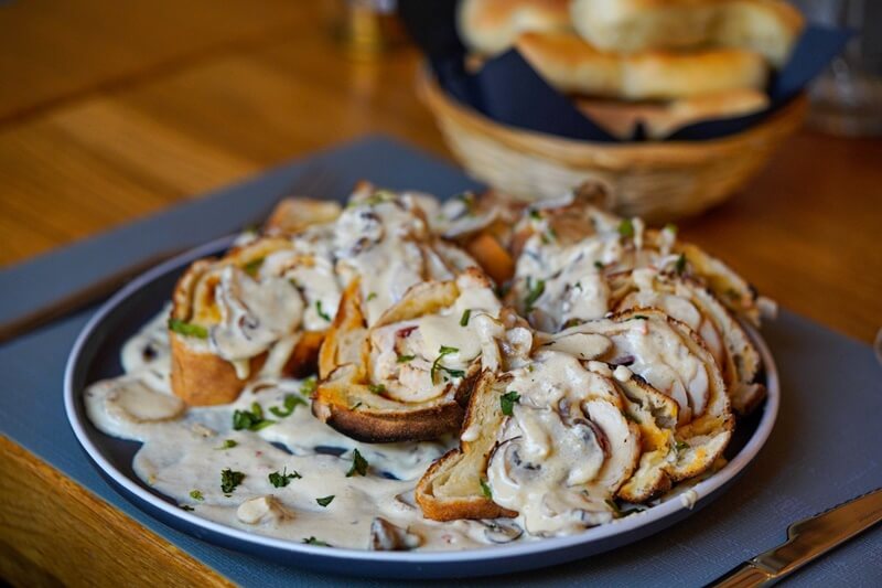 Raskošnu gozbu možete započeti i predjelima, a kao specijaliteti kuće ističu se bruschetta s dimljenim lososom i wasabi hrenom te bruschetta s pancetom i tartufatom. Nakon što se apetit polako otvorio, pred vama je izbor glavnog jela. Volite li talijansku kuhinju, možete se opredijeliti za spaghette, tagliatelle i njoke u klasičnim ili kremastim umacima. Za ljubitelje mesa i roštilja, Restoran Kaptol sprema najukusnije ćevape i najsočnije steakove, a preporuka svakako odlazi za pljeskavicu punjenu sirom i pečenu u tijestu, kao i pileći file, izvana umotan u tijesto, a napunjen buđolom, kulenom i mozzarellom.