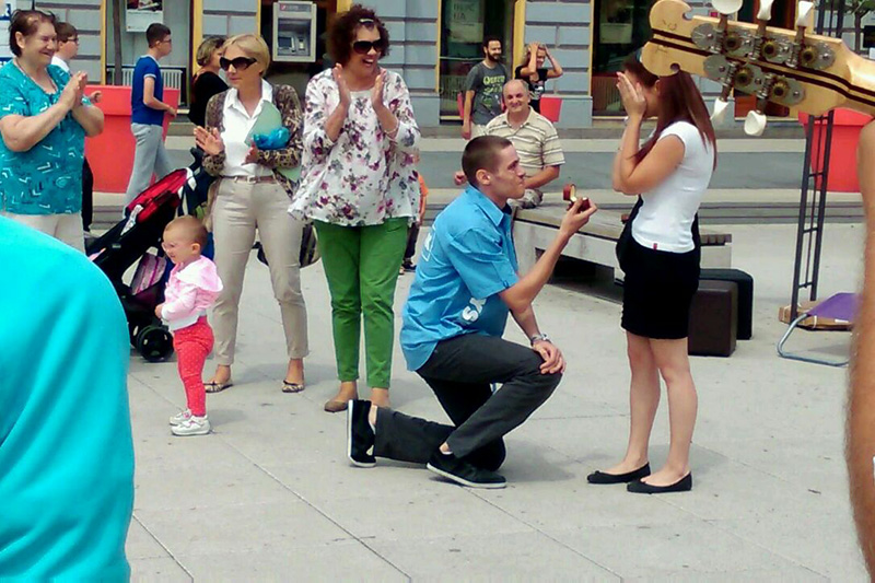 Svojim nesvakidašnjim činom prosidbe, djelatnik jednog danskog lanca priredio je nezaboravno iznenađenje svojoj djevojci Suzani. Matija je uz pomoć svojih kolega zaprosio djevojku na Trgu Ante Starčevića. Uz pratnju tamburaša, u 11:30 na video zidu pisalo je: "Suzana, udaj se za mene!" Željno iščekivani "Da!" izazvao je gromoglasan pljesak okupljenih.