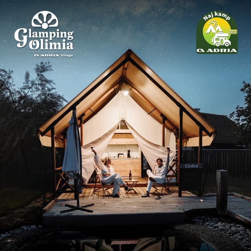 Slovenski kampovi do kraja rujna zabilježili su rekordnih 2,2 milijuna noćenja, što je 34 posto više u odnosu na prošlu godinu. Od toga se 600.000 noćenja odnosi na domaće goste. Glamping se sve više traži, a u oazi mira i prirode slovenskih Terma Olimia nalazi se Glamping Olimia Adria Village s 20 suvremeno opremljenih luksuznih šatora, za dvije ili četiri osobe, koji gostima omogućavaju dodir s prirodom i premium odmor s dozom avanturističkog duha.