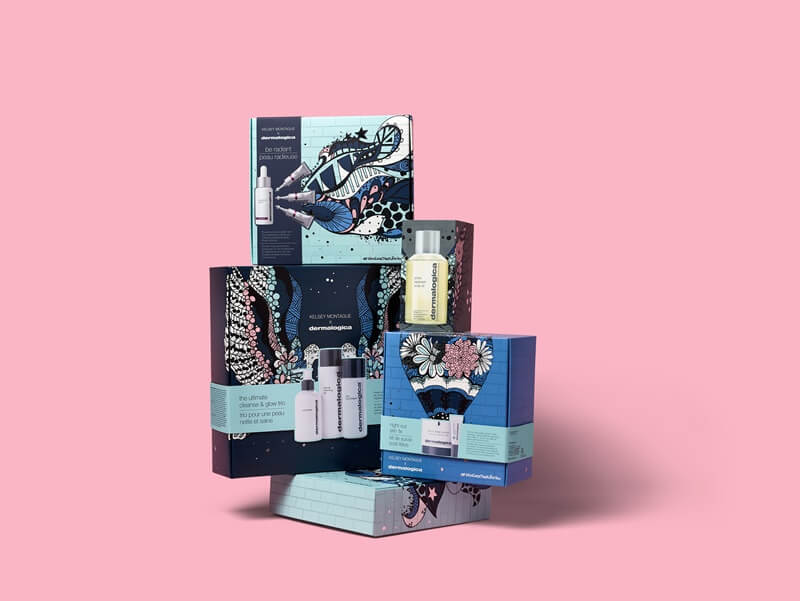 Prepoznatljivi dijelovi njezinih murala naslikanih na zidovima po cijelom svijetu – krila, valovi, baloni i ptičice light motivi su novih Dermalogica x Kelsey Montague pakiranja šest kompleta koji obuhvaćaju kako najprodavanije Dermalogica proizvode, tako i novitete u putnim i klasičnim pakiranjima. Nova pakiranja toliko su neopisivo vedra i vesela da ćete ih zajedno s već dobro poznatim i provjerenim Dermalogica proizvodima, poželjeti pokloniti dragim ljudima, ali i sebi.