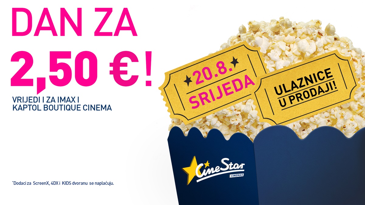 Veliko platno, mala cijena – 20. 8. svi u Cinestar za samo 2,50 €!