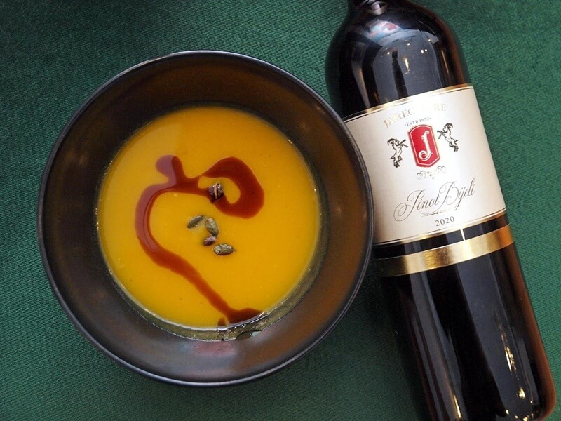Vinski brend Jarec Kure već dugo je, ne samo u Zagrebu, sinonim za dobar odnos cijene i kvalitete. Ovom je prigodom predstavljen perjanicom vinarije Pinotom bijelim 2020 uz krem juhu Hoki-doki od hokaido tikve s bučinim uljem i sjemenkama. Zelinski vinar Kristijan Kure bio je spriječen, pa je vino i vinariju predstavila koautorica projekta Renata Cisar.