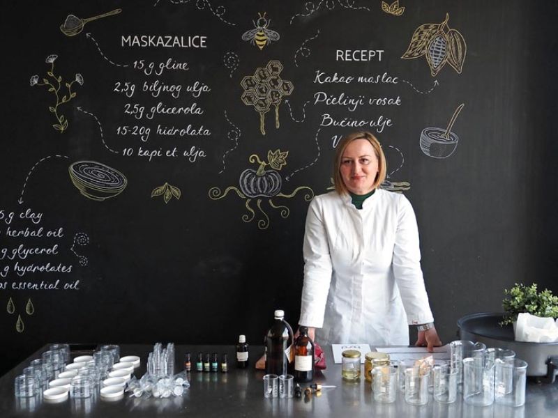 Prva stanica na ovom eko i biodinamičkom vikendu bio je OPG Jakopović i ekološka proizvodnja kozmetike Kuća magične trave. Na vratima je žensku ekipu dočekala vlasnica, Snježana Jakopović koja je pokazala kako nastaju prirodni beauty proizvodi koji su sve žene, kasnije, dočekali u sobama Termi Sv. Martin. Upravo su ove terme domaćin novog ženskog vikenda, prošle godine od ESPE (European spas associoatinon) dobile međunarodnu nagradu u kategoriji (Innovation spa education) kao potvrdu kvalitete wellness ponude. Otkrivajući sve detalje nastanka krema, sapuna, losiona za tuširanje od eko uzgoja, eko proizvodnje pa do eko produkta, Snježana je najavila i svoju vrlo inspirativnu radionicu u Workshopu Termi, koja izgleda poput pravog malog labosa. U njemu su sve sudionice napravile piling za proljetno buđenje kože i hranjivo ulje protiv celulita kojeg su isprobale u wellnessu te večeri.