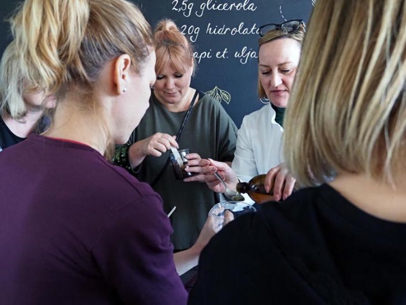 Biodinamički put žensku je grupu doveo do još jednog jedinstvenog eko punkta u Međimurju – Eko Holiday Home “Lina” , prvog objekta ruralnog turizma s prestižnim eko certifikatom Ecolabel, u selu Pleškovec. Ulazna vrata je otvorio bračni par Lajtman, Biserka i Zvonko, koji su pokazali imanje na kojem rastu namirnice nastale u skladu s biodinamikom ali i kuću koja je prije samog završetka trebala zadovoljiti čitav niz parametara da bi dobila ovaj hvalevrijedan certifikat. Kako je vrijeme prolazilo, hop on, hop off bus je žensko društvo doveo do termi u kojima je sve bilo spremno za dvije ‘tipično ženske’ radionice. U prvom dijelu poslijepodneva vizažistica Anamarija Grkavac pokazala je pravila kako se ovog proljeća našminkati za samo 15-ak minuta, stavljajući tako u fokus Aura make up trendove nove sezone. Sve žene je posebno oduševilo ‘koraljno rumenilo’ koje je svim licima dalo oblik i potrebnu svježinu.